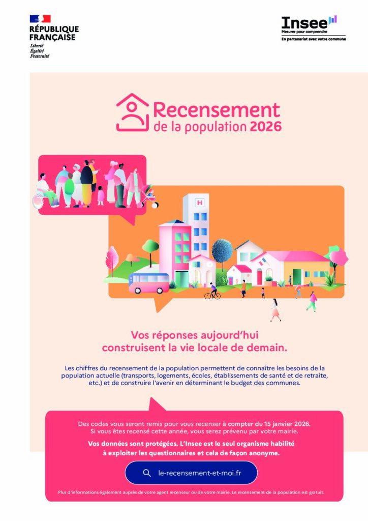 Votre participation est essentielle. Les résultats permettent de déterminer la population officielle de la commune, de déterminer la participation de l’Etat au budget de notre commune et d’identifier les besoins en termes d’équipements publics collectifs.